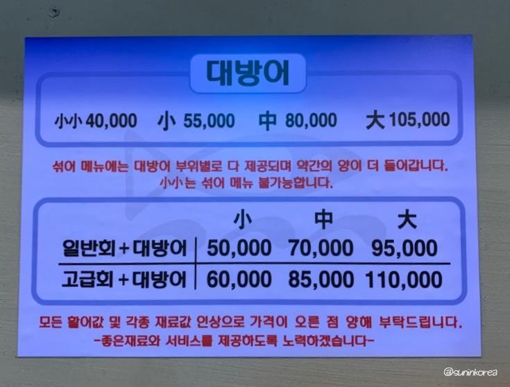 백신 접종 증명서 보여드리고 대방어 대(大)자로 주문했다.