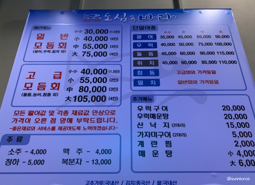 가격표. 가격만 봤을땐 저렴한 편도 아니고 걍 평균?