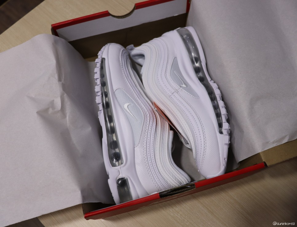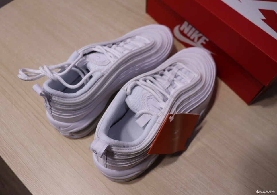 맥스97은 고1 때 사서 고등학교 내도록 잘 신고 다녔던 운동화. 다시 신는다니 감회가 새롭네... 갖고 싶었던 트리플 화이트에 거기다 나이키 공식 홈페이지에서 산거라 넘넘 기분이 좋다 ♥