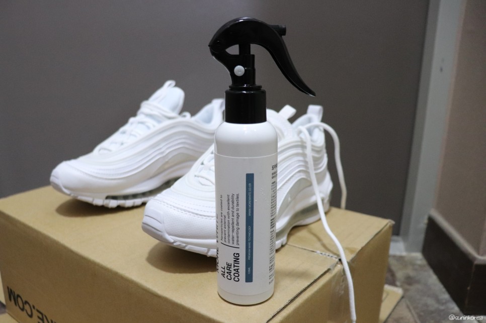 그러다보니 신발이 너무 빨리 해져서 어디 자리에 앉으면 지우개로 지우거나 물티슈로 닦았다. 결벽증이냐 물어보는 사람도 있었고 가족들이나 가까운 친구들이 보기엔 어휴... 극성... 이라고 직접 말해줘서(고마워^^) 좀 덜 닦고 있었는데 인스타를 하다가 광고 영상에 혹해서 구매한 모어화이트. 먼저 테스트를 하고 20cm 정도 거리를 두고 뿌리라고 되어 있는데, 나는 쿨하게 테스트 절차는 건너 뛰고 집에 있는 흰 운동화와 스웨이드 드라이빙 슈즈, 플랫 구두를 꺼내서 다 뿌려 놨다. 지금 신고 다니고 있는데 사실 딱히 더러워지는 걸 방지해 주는 진 아직 잘 모르겠다. 그래도 혹시나 모르니 나의 에어맥스97에 칠갑을 해놓은 상태. 최소 이틀은 말려야겠다. 제발.... 완전 방염은 아니지만 어느 정도라도 제발... 방수도 된다고 하는데... 제발 효과가 있었으면 좋겠다. 효과가 없다기엔 가격도 생각보다 쎄고, 스프레이 뿌리는 곳이 조악해서 손에 전부 묻고 줄줄 흐른다. 다이소 가서 통을 새로 살까? 할 정도의 제품 수준. 내용물이라도 효과 있으면 좋겠다^^