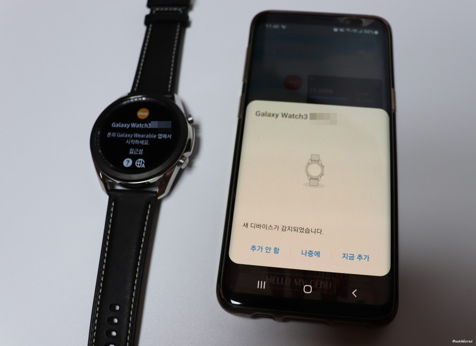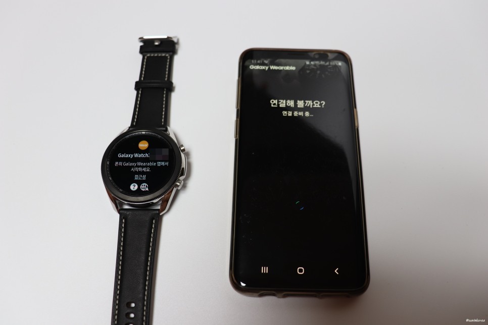 갤럭시 워치 또한 애플워치처럼 옆에 갖다 대면 자동으로 잡는다. 그래서 연결하는 건 하나도 어렵지 않다.