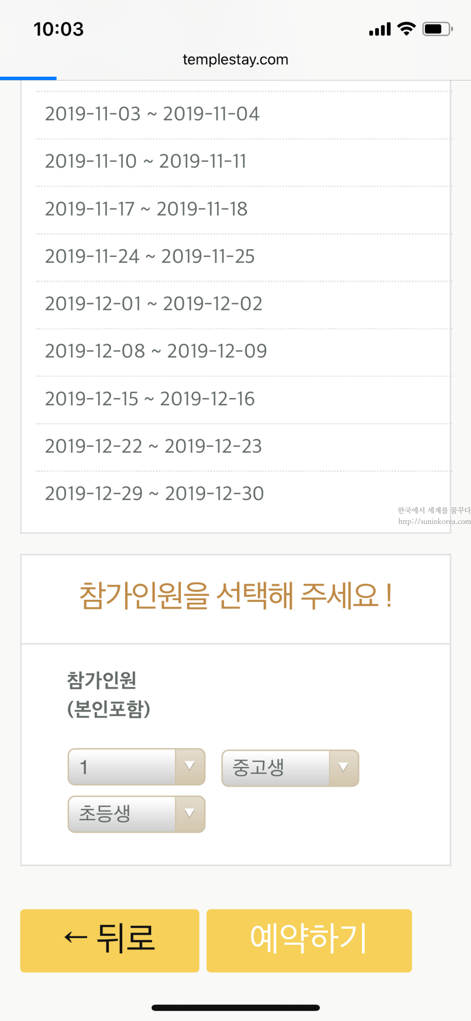 4) 인원을 선택하고 예약 하면 끝! 카드 결제는 없었고 무통장 입금만 가능하다. 그리고 사무실과 통화하면 당일날 직접 현금을 내는 것도 가능하다.