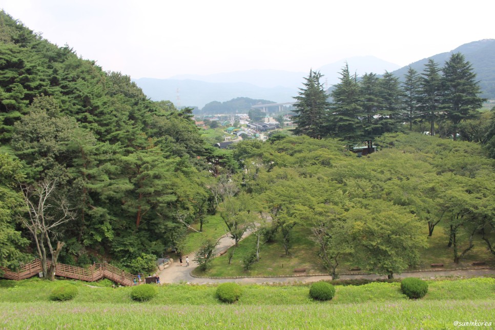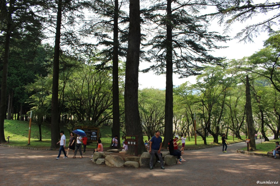 측백나무와 편백으로 이루어서 향도 좋고 머리가 맑아지는 느낌이다. 자연은 인공적인 에어컨이나 공기청정기 이상의 무언가가 있다.