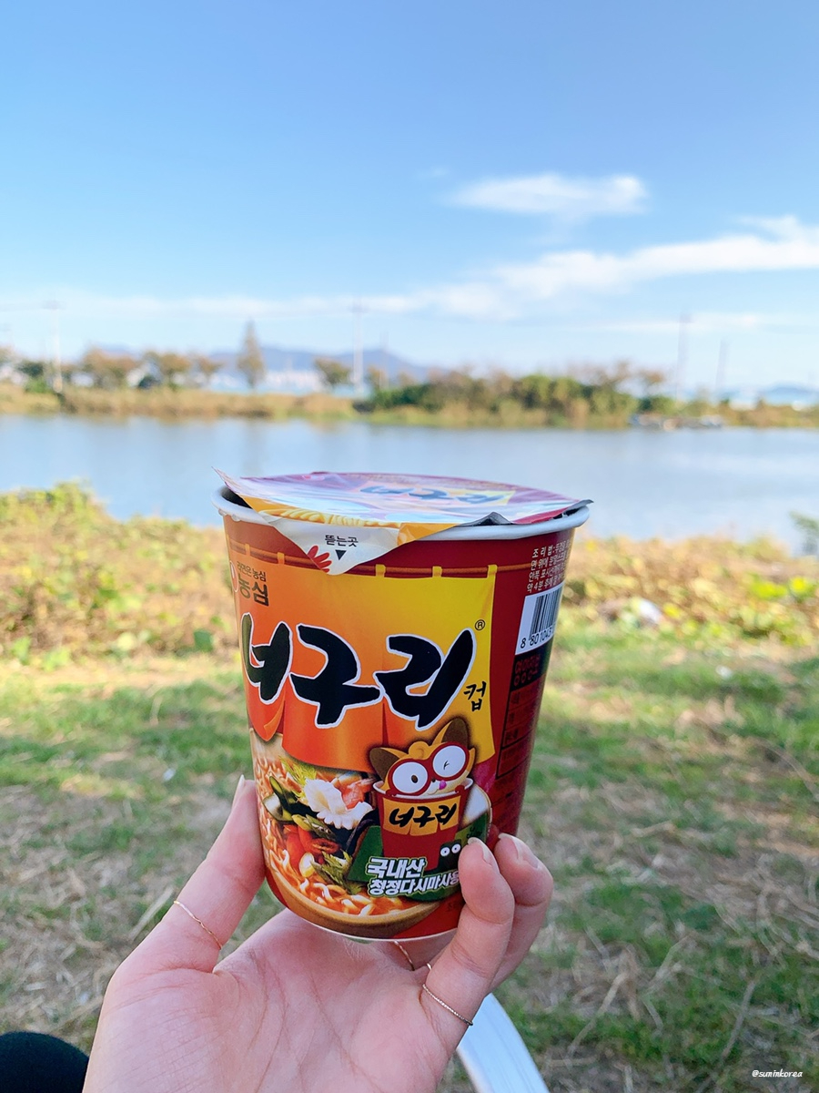 솔솔 부는 낮바람에 살짝 잠이 들었고, 일어나니 출출해지기도 하고 화장실도 가고 싶어 화장실 찾아 삼만리... 내가 주차한 스팟은 하필이면 좀 먼 곳 이었다. 그래도 산책 겸 살살 걸어서 화장실에 갔다가 8차선 건너편에 있는 편의점에 가서 너구리 컵라면과 아이스 아메리카노를 구매해서 또 살살 걸어 돌아갔다. 릴렉스 체어에 앉아 컵라면 박살 내고 또 눕기 시전..... 책도 조금 읽고 이제 거의 5시가 되어가는 시간이라 집으로 복귀했다.