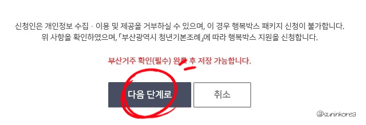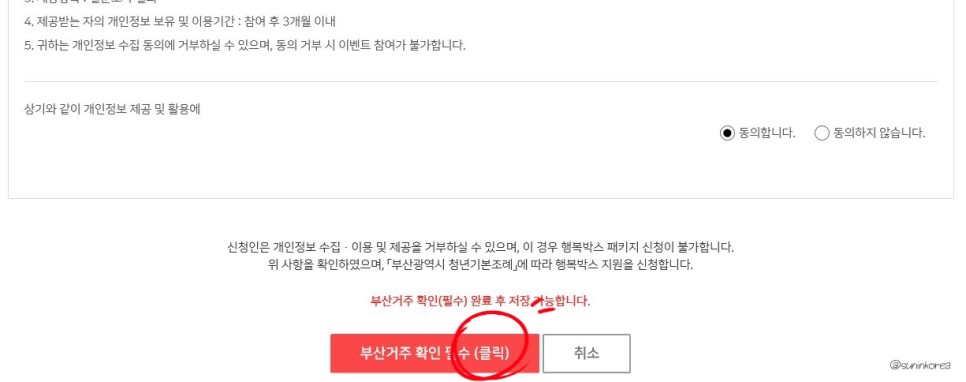3. 쭉쭉 동의하고 부산 거주중임을 확인하는 절차