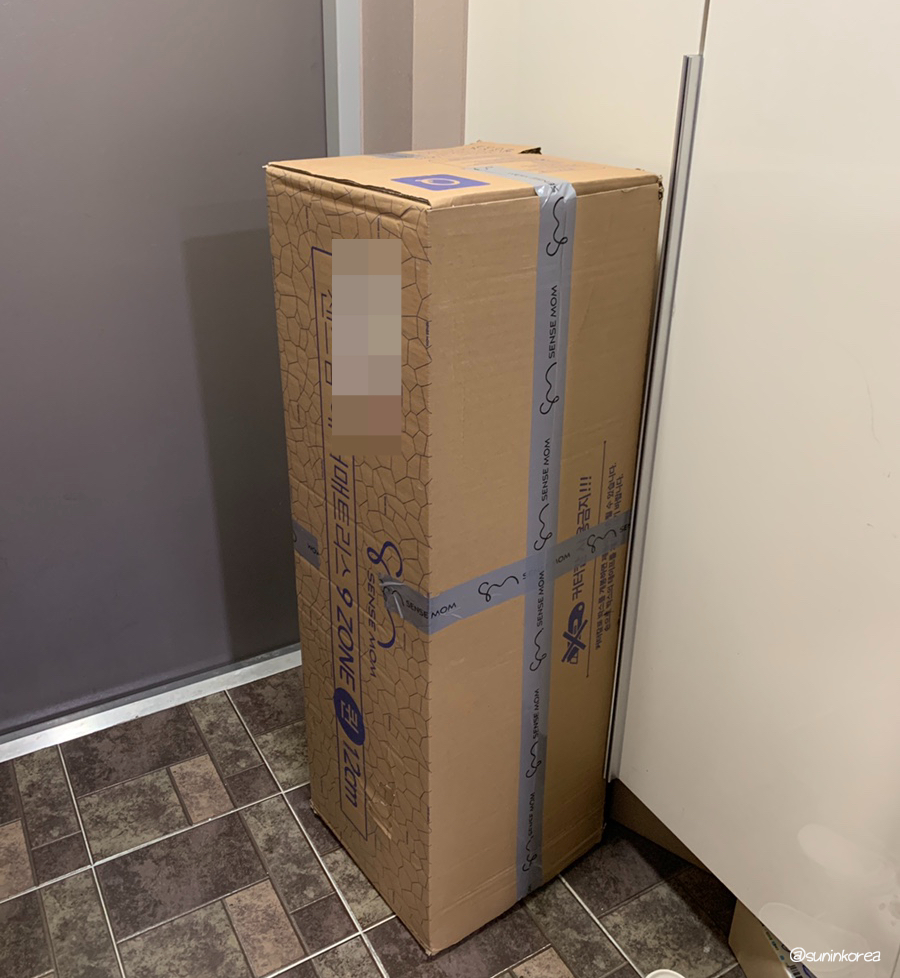 요렇게 배송이 와서 바로 뜯어 보았다. 매트리스가 박스 바로 안에 있기 때문에 절대로!! 칼을 쓰면 안된다. 상처 하나 입힐 수 없어 가위도 쓰지 않고 손으로 조심히 테이프를 뜯었다.