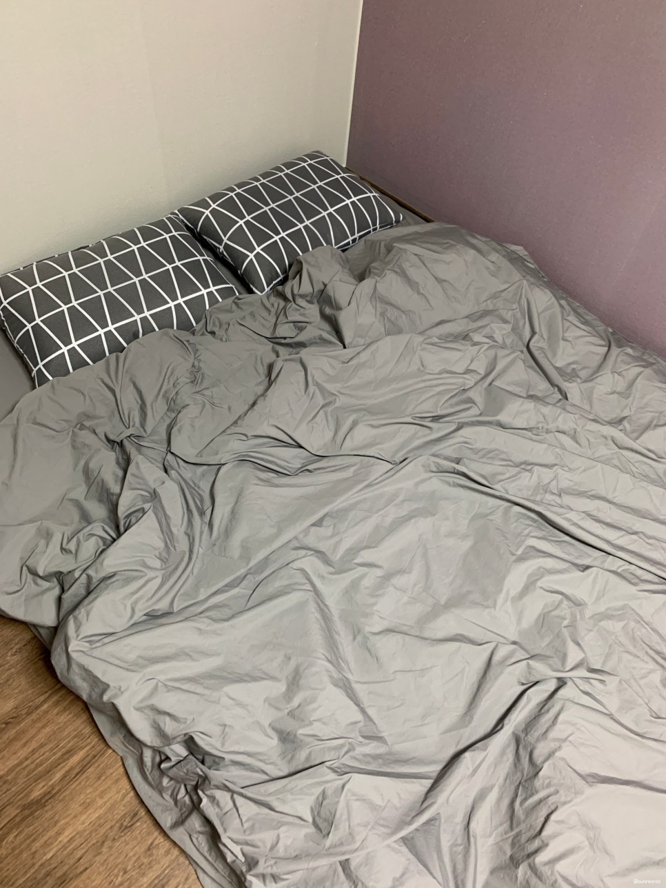뿅 펴봤더니 어라? 생각보다 크다. 냄새는 전혀 나지 않았고 약간 부풀어 오르는 것 같다. 매트리스에 원래 씌어져 있는 방수커버는 넘나 못생겨서(;;) 아망떼에서 매트리스 커버를 주문했다. 하는 김에 세트로 이불커버도 주문! 꺄>.< 색이 좀 칙칙한 것도 같지만 일단 센스맘 매트리스를 보호한다고 생각하고 아주 잘 쓰고 있다. 원래 슈퍼싱글 사이즈를 사용했는데 퀸사이즈를 혼자 쓰다니...! 넘나 좋다!! 본가에 있는 슈퍼싱글 침대보다 퀸사이즈 센스맘 매트리스가 훨~~씬 편하고 맘에 든다. 엄마 미안해... 침대 엄마가 사준곤뎅... 넓은게 죠앙...♥︎