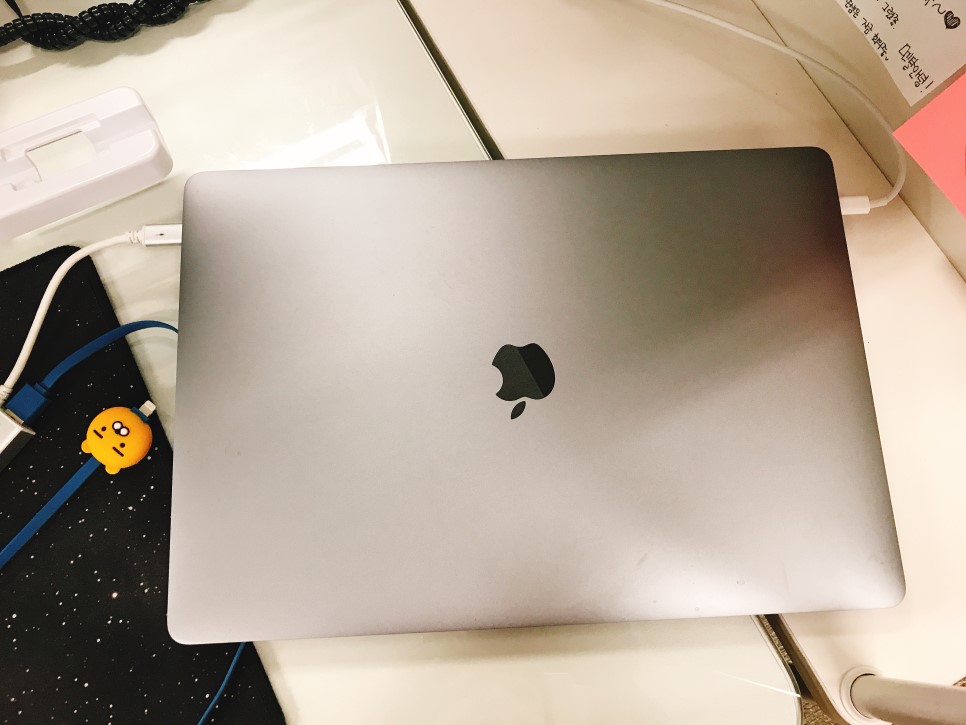 하얀 조명 밑 사무실에서 찍은 왼쪽 사진이 더 실사에 가깝다. 맥북프로의 최대 장점은 터치바. 컴퓨터도, 음악도, 사진도, 그림도 별 관심이 없는지라 남들이 맥북프로 터치바로 주로 사용하는 음악, 사진, 그림 편집 등을 사용할 순 없지만 충분히 편리함을 느낄 수 있다. 단순하게 경고창, 음량 조절, 화면 밝기 조절, 로그인 등 소소하게 쓸만한 기능들이 많다. 그게 익숙해지면 뉴맥북의 Function키 들에 이질감을 느낀다.