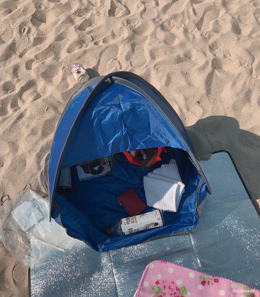 내 건물 위 전용 옥상이 있지 않는 이상 보통 해수욕장에서 태닝을 하는데 모래가 엄청 많다. 돗자리를 밑에 깔고 비치타월을 깔자. 비치 타월을 그냥 모래 위에 깔면 빨아도 빨아도 모래 알갱이가 계속 하나씩 나올 것... ㅠ 돗자리는 특별한 건 없고 슈퍼싱글 사이즈의 그냥 은색 돗자리를 사용한다. 다이소에 가도 있고 아마 창고를 뒤져봐도 하나는 나올 것이다.