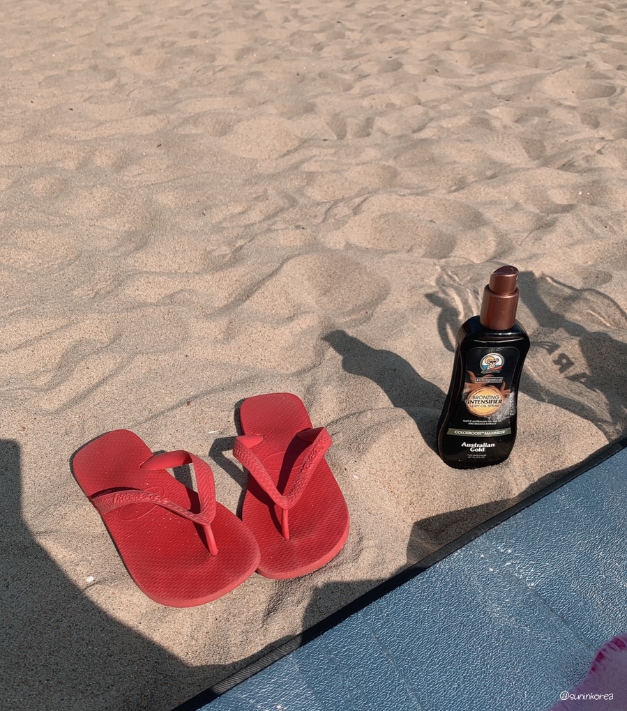 그래서 여름엔 아예 태우는 편. 보통 여름엔 하도 놀러 다녀서 자연스럽게 그을린 구릿빛 피부가 유지 됐었는데 작년 부터는 코로나 때문에 놀러 가지를 못해 인위적인 태닝을 시작했다. 샵을 이용하는 건 돈도 시간도 너무 아깝다...ㅠㅠ 해수욕장에서 야외태닝을 하면 바깥 공기도 쐬고 간간이 해수욕도 하고 애초의 목적인 태닝도 할 수 있다. 날씨가 좋았던 저번 주말 2021년 첫 태닝을 시작했다. 아직 군살 정리가 안됐긴 한데(평생 안될 예정이라 딱히 조급하진 않다....ㅋ) 비키니 입고 태닝 한판 했더니 제대로 에너지 충전! 경험으로만 얻은 야외태닝 가이드를 시작해 보려한다.