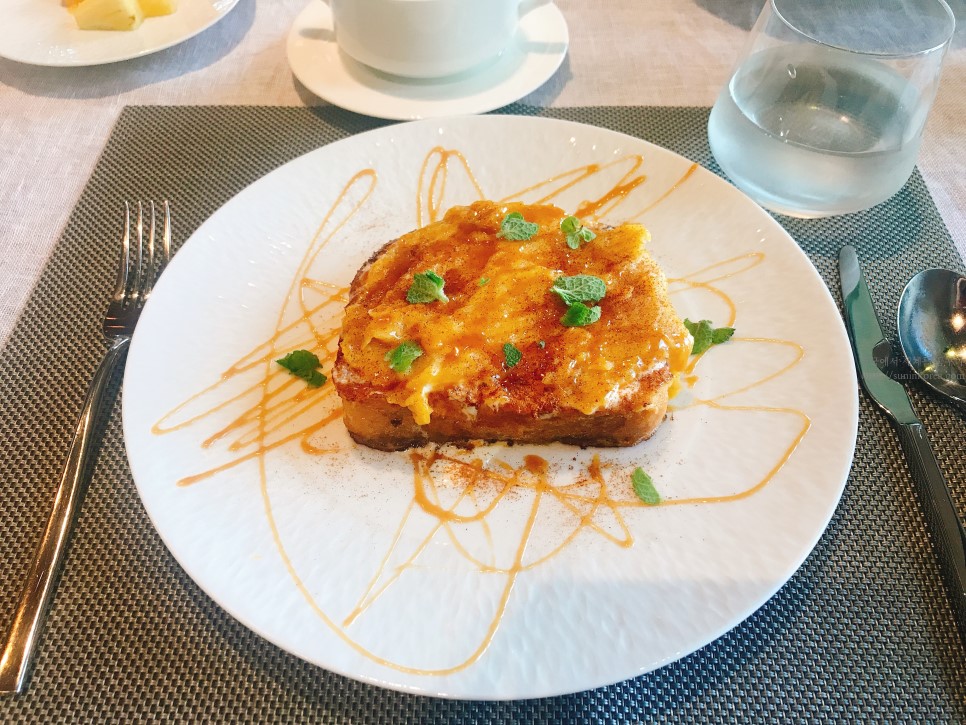 일단 내가 알던 프렌치 토스트의 비주얼이 아니라 깜짝 놀랬다. 나이프를 이용해 썰어 보니 식빵을 도톰하게 두세장 올려 안에 달달한 소스를 쌓은 것 같았다. 계란도 분명 들어 간 것 같은데 어떻게 들어 갔는지는 모르겠다. 카라멜 소스도 뿌린 듯. 전반적으로 달콤했다.