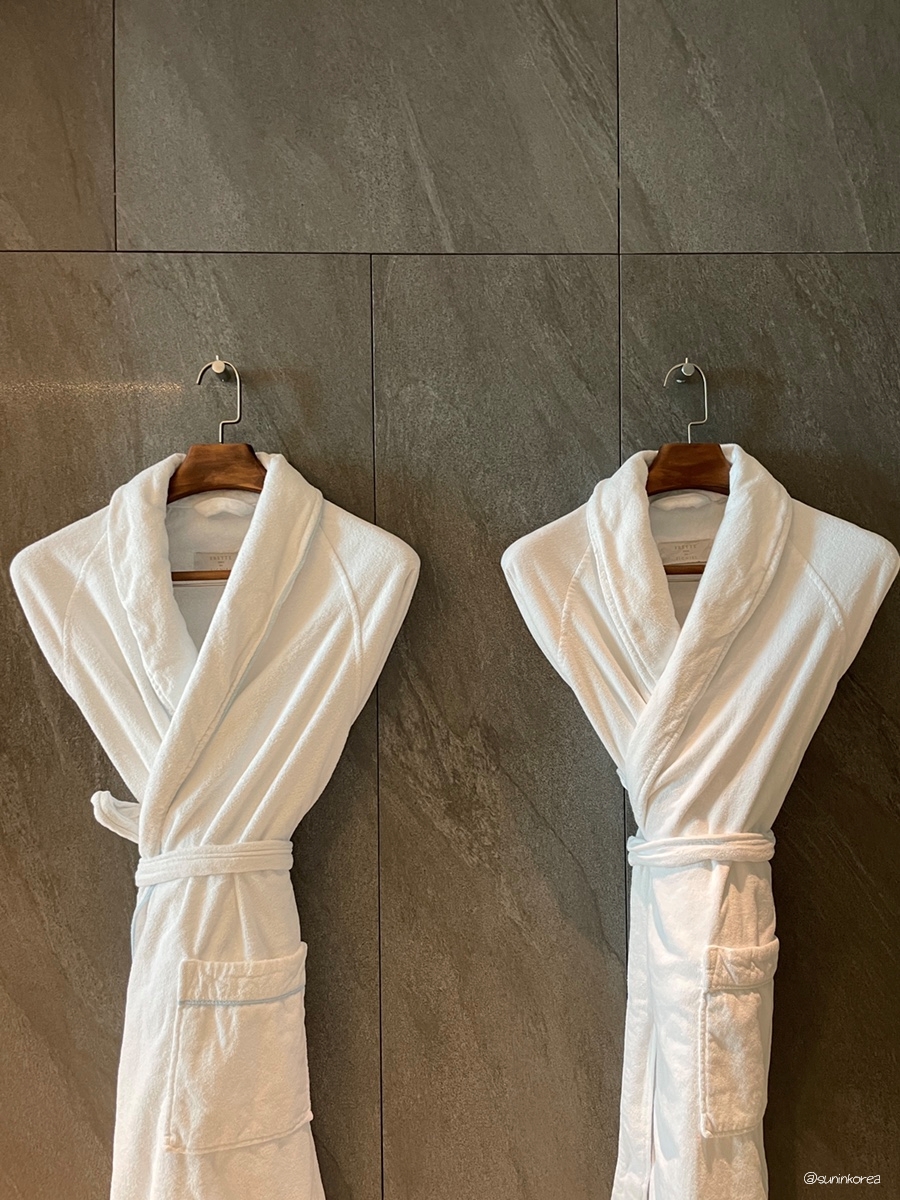 샤워가운도 예쁘게 걸려있고, 우리는 세명이라 옷장에 하나 더 있었다.