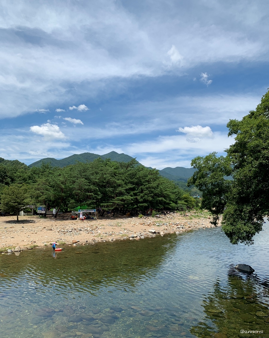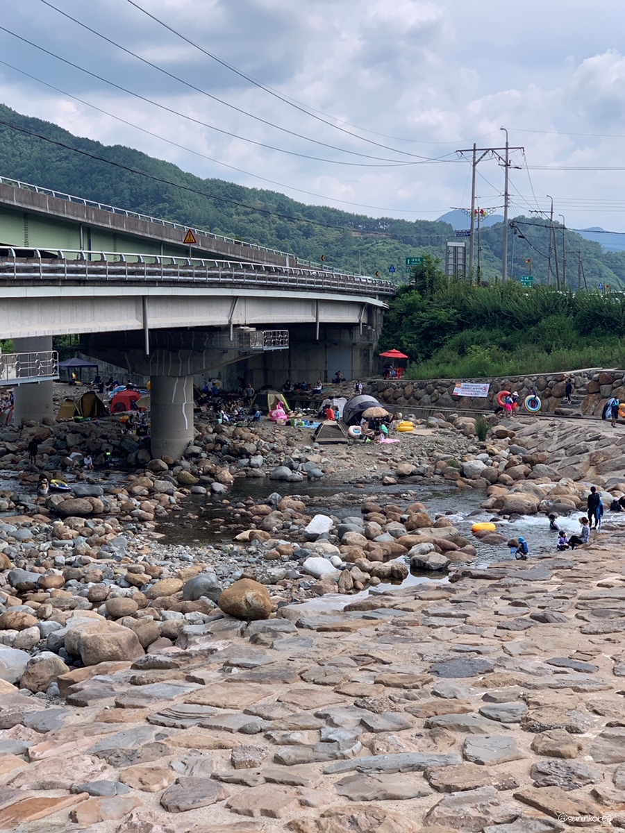 위 사진은 비가 엄청 온 다음날 사진이라 물살이 세 보이지만 평소에는 졸졸 흘러서 아주 어린 아이들이 놀기에도 안전한 곳이다. 이쪽엔 어린 아이들이 있는 가족들이 아이들을 지켜보며 캠핑을 즐기기 위해 물가 가까이 자리를 잡고 있다.