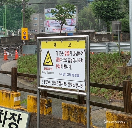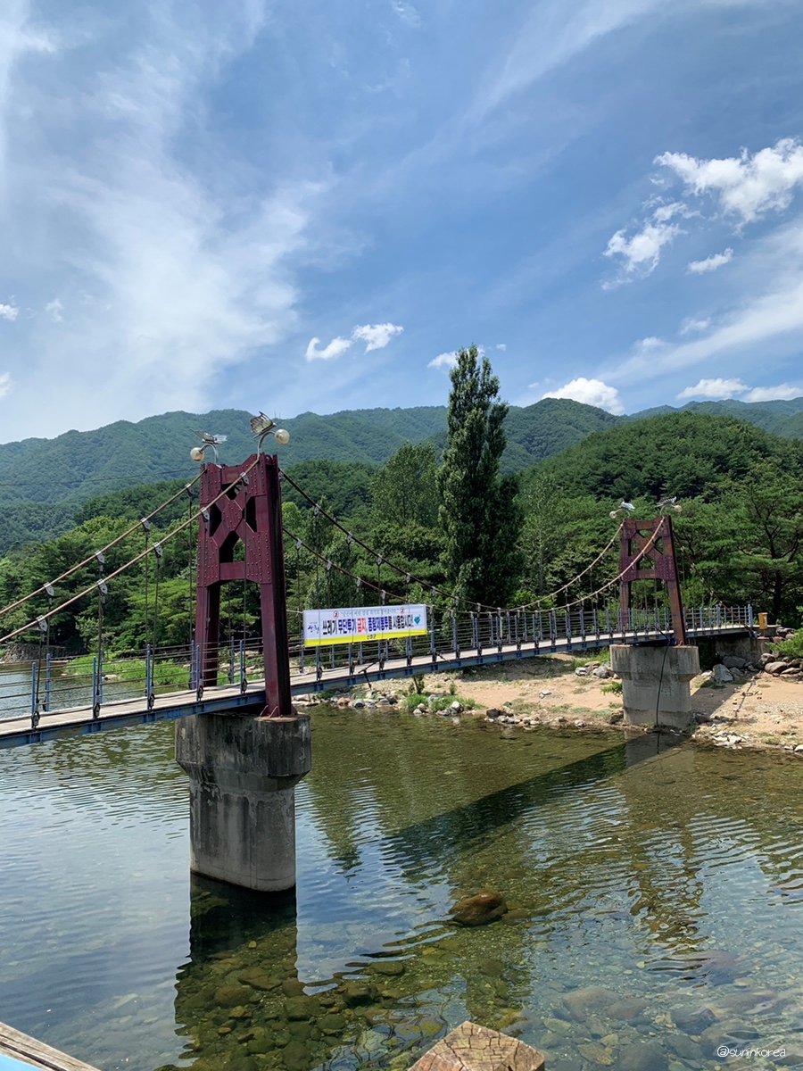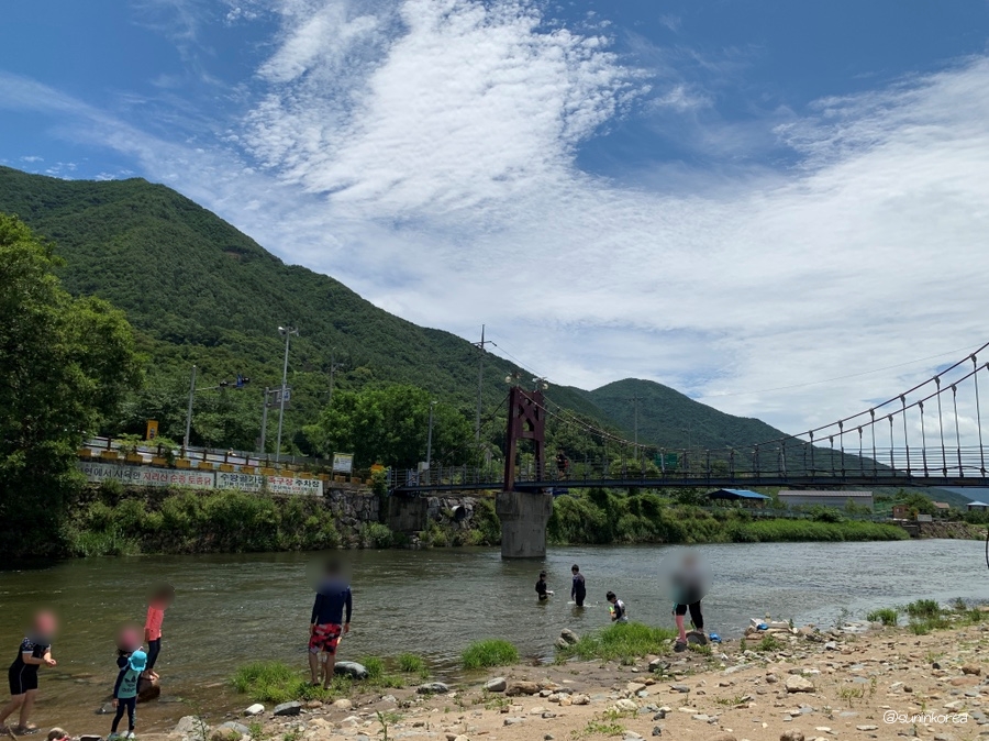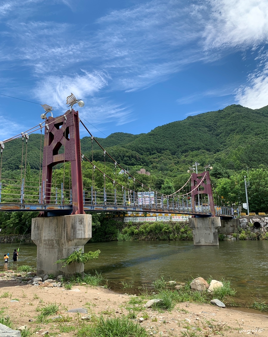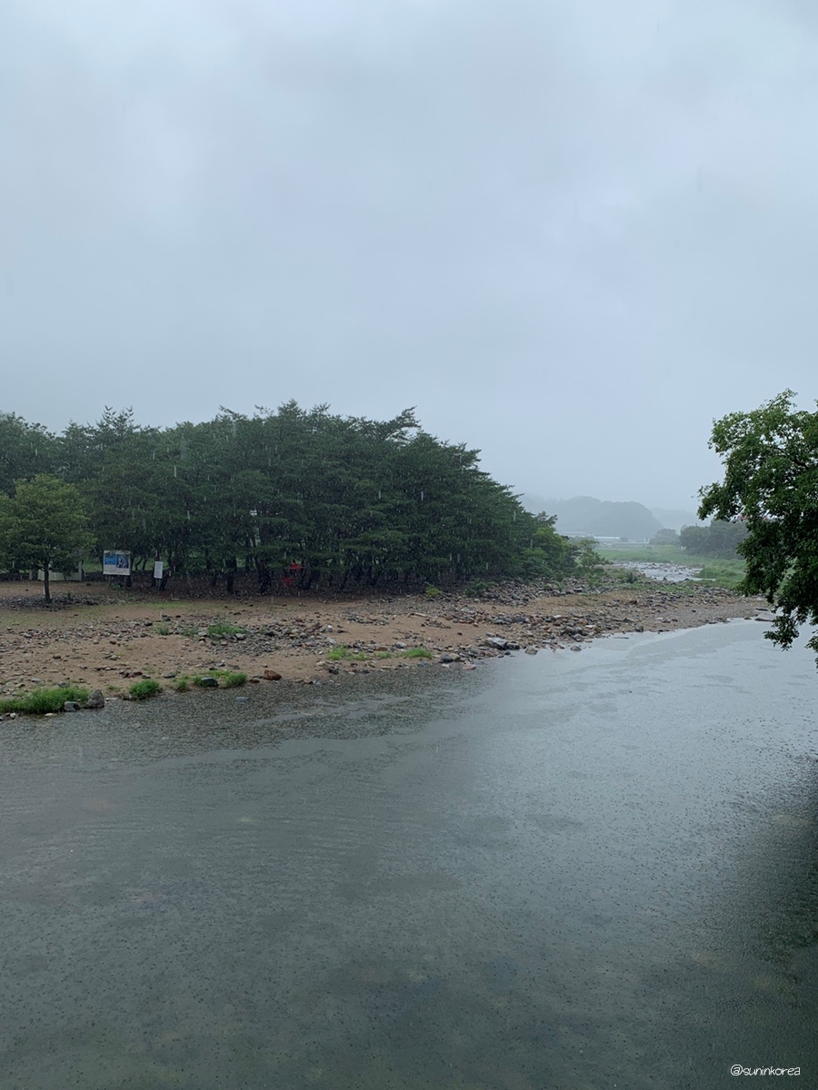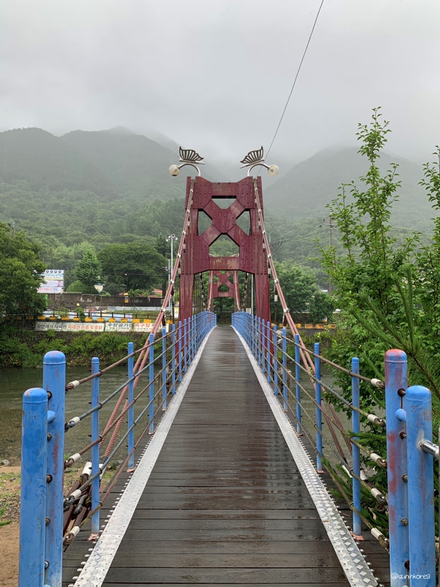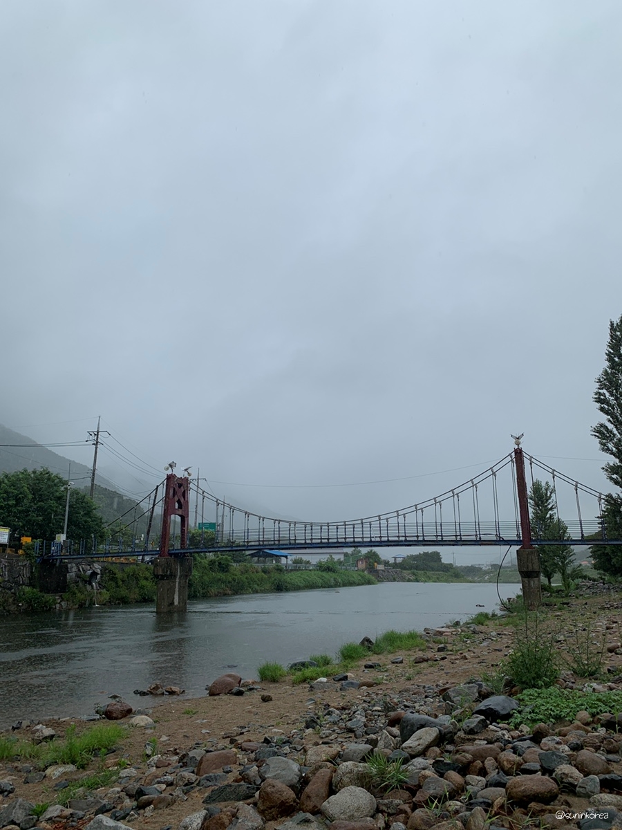 아무리 그래도 맑은날에 보는게 훨씬 예쁘다. 보행자 전용 다리로 건너편 삼장초등학교 쪽 도로와 캠핑장을 연결해 준다. 아마 요 다리 사진이 인스타에 뜬 걸로 안다.