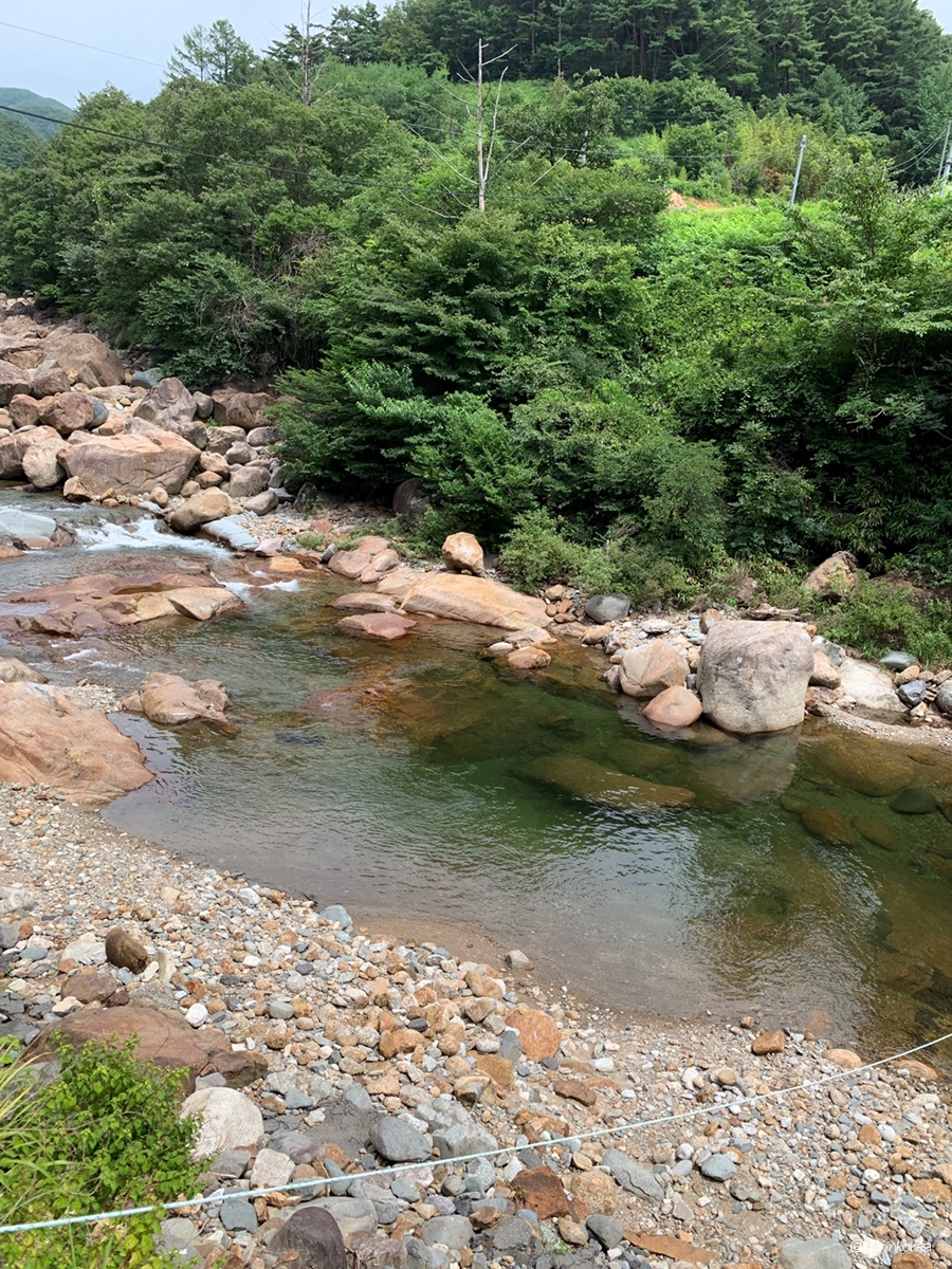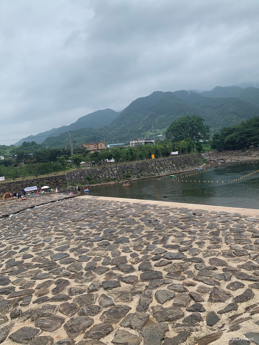 깊어 보이는 소나무 바로 밑에까지 다녀 왔는데 폭우가 내린 바로 다음날이 아닌 이상 160기준 가슴 아래 정도로 물이 흐른다. 초등학생부터 놀기 좋은 곳! 대신 돌이 울퉁불퉁해서 아쿠아슈즈 같은 걸 반드시 신어야함!! 물고기도 있어서 넓고 편하게 스노클링도 가능하다. 물이 많은 날에는 저~ 위쪽에 짧게 나마 급류타기도 가능함 ㅋ.ㅋ