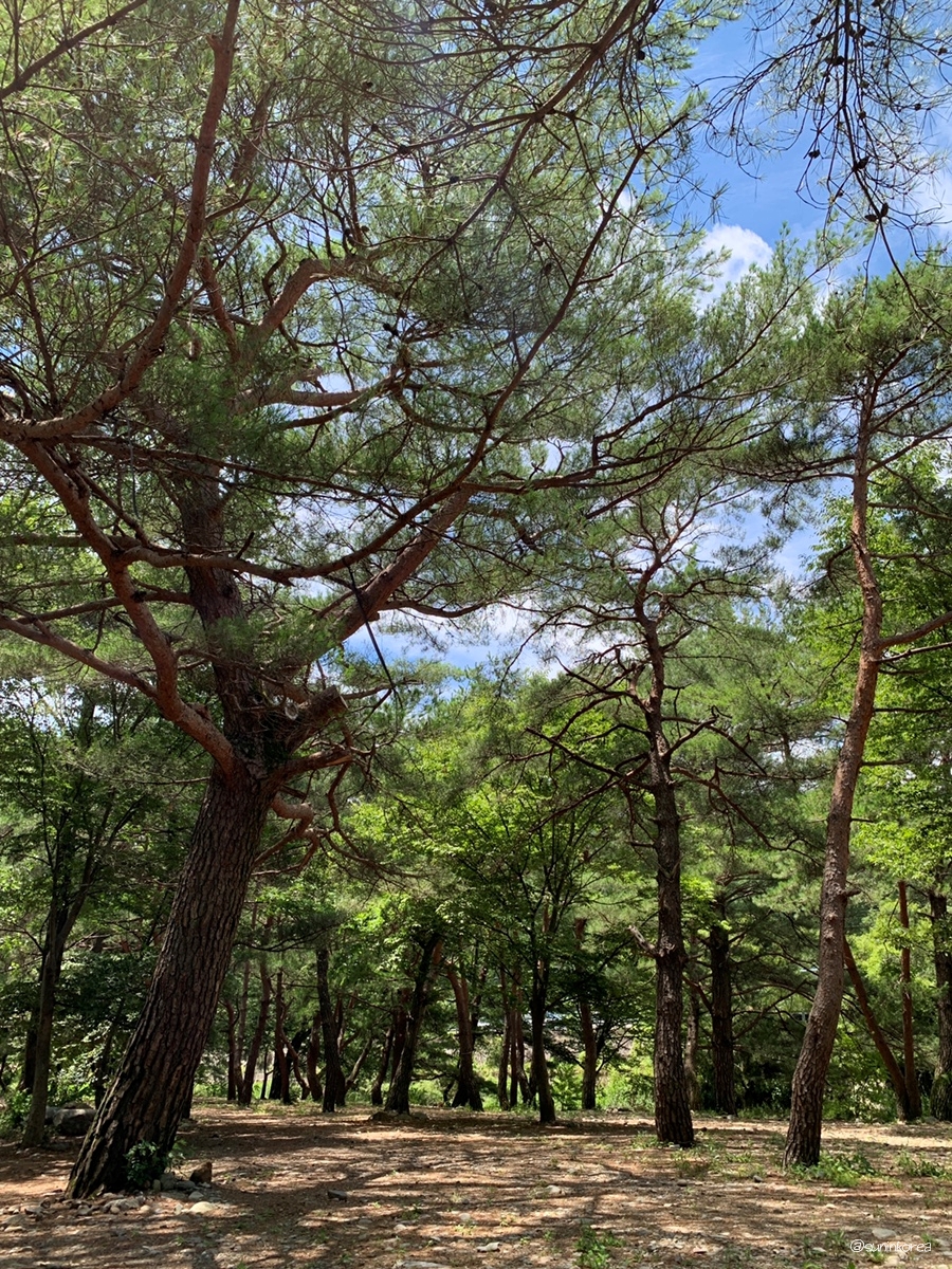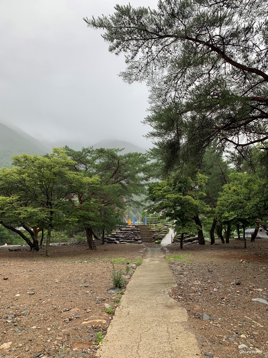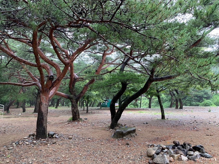 비올때 걸어 보셨나요? 향긋한 소나무 냄새랑 비오는 소리, 고요한 적막감이 오감을 만족시켜 준다....ㅠㅠ 비가 쏟아 졌던 날 텐트가 한 세개 있었나? 저 한번만 앉았다 가도 될까요? 입 밖으로 튀어나올뻔 했지만 간신히 참음 ㅠㅠ 빗소리 들으며 고즈넉하게 커피한잔 하면 진짜 행복할 듯 싶었다.