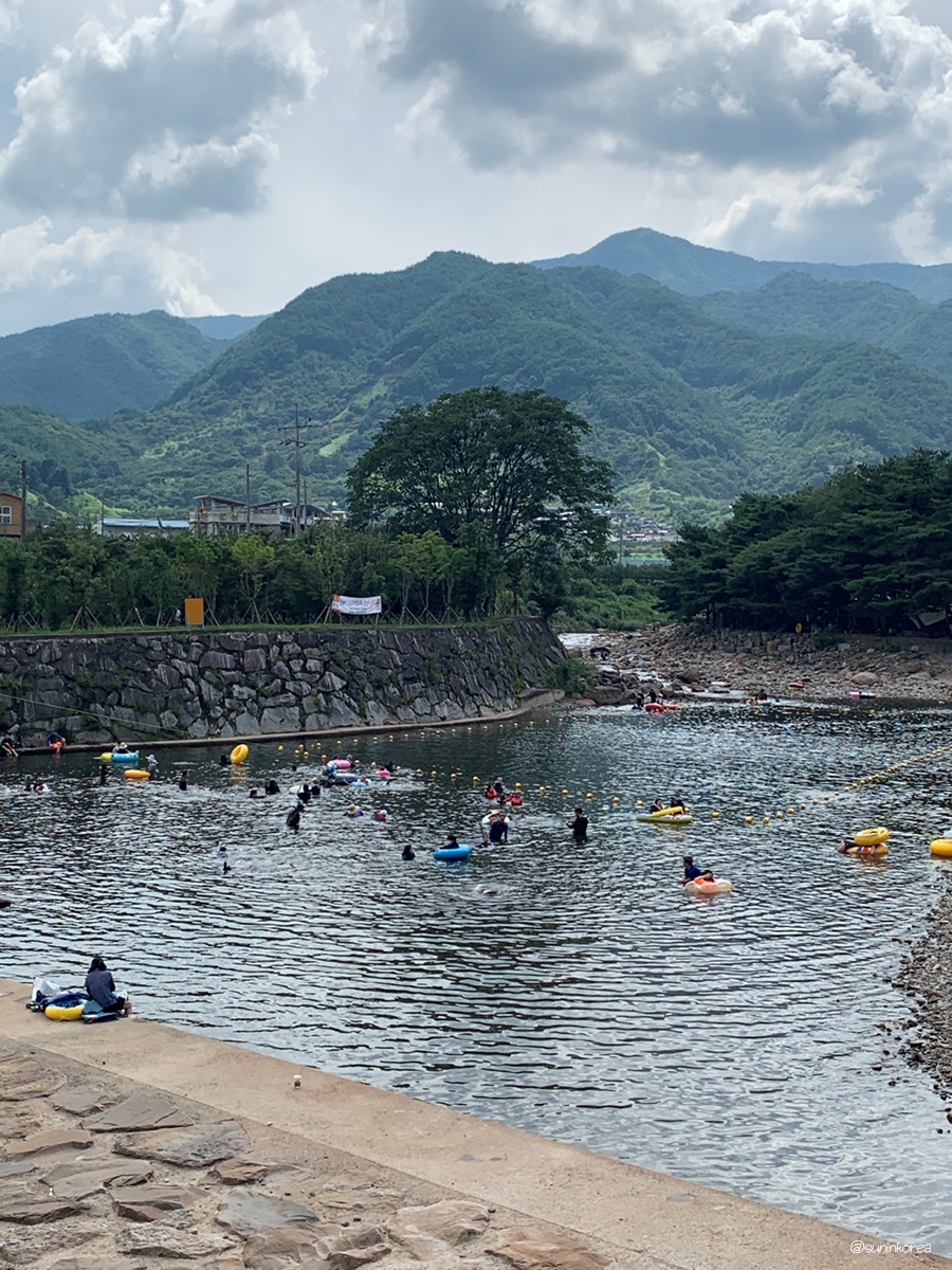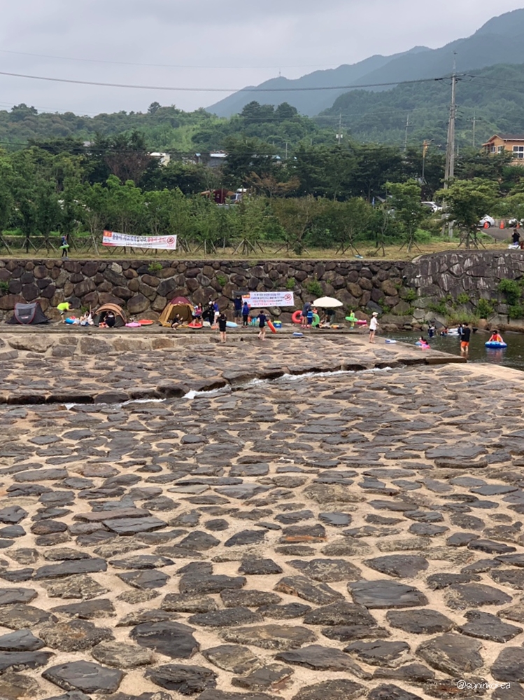 물이 철철 흐르는 수로에 튜브를 타고 내려가는, 소위 물 미끄럼틀 같은 곳이 있어 정말 정말 유명해진 곳이다. 7월 초 비가 왔던 주말, 휴가철도 아니고 날씨도 구렸는데!!! 그때도 사람이 많았던 걸 보고 혀를 내둘렀었지... 비가 많이 왔을 때 강의 범람을 막고 물고기들의 통행을 위해 만들어진 것인데, 주목적은 농업용수 공급인 용수로다. 요렇게 노는데 잘 쓰고 있는 걸 보고 '역시 먹는 쪽, 노는 쪽으로 머리 쓰는 건 절대 뒤지지 않는구나...!' 생각했었다.