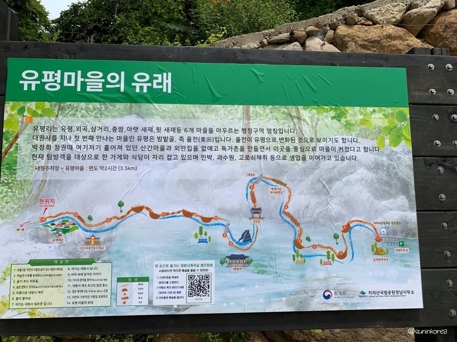 대원사 계곡길 종점부가 있어서 민박, 산장, 음식점, 카페가 다있다. 쉼없이 이어진 산길을 오르다가 유평마을에 들어서면 갑자기 딴세상이 된 것 같음 ㅋ.ㅋ 나랑 할머니는 요까지만 딱 오고 커피한잔 사 먹고 돌아서 내려갔다.