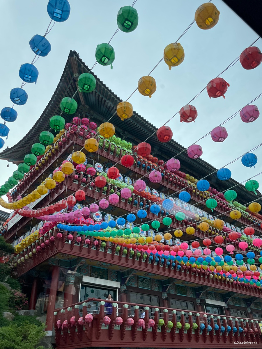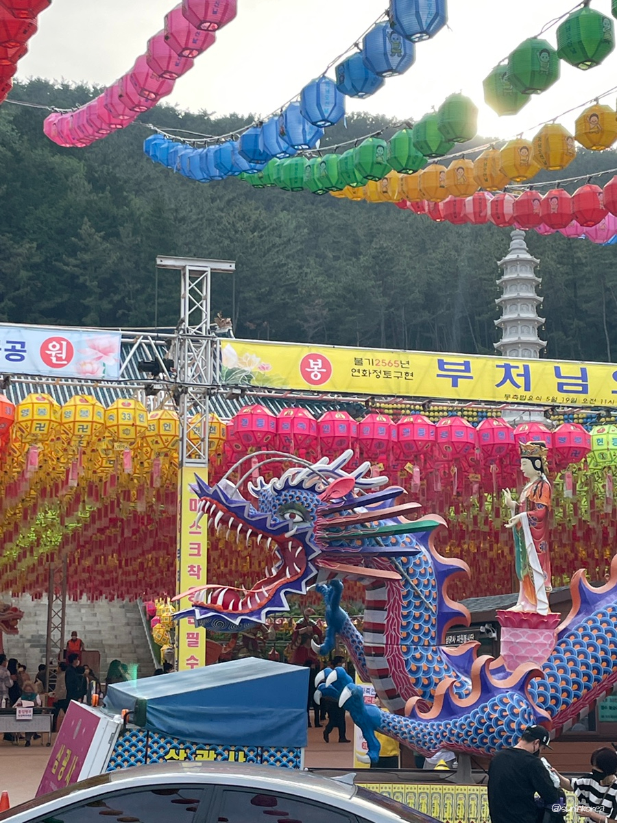 몰랐는데 우리가 탔던 마을 버스에 삼광사도 있어서 사람이 엄청 많았다. 우르르 내렸다가 우르르 타심... 삼광사는 부산 최대 규모의 절 답게 부처님 오신날의 연등 규모가 어마어마 했다. 영화 속으로 들어 가는 줄.