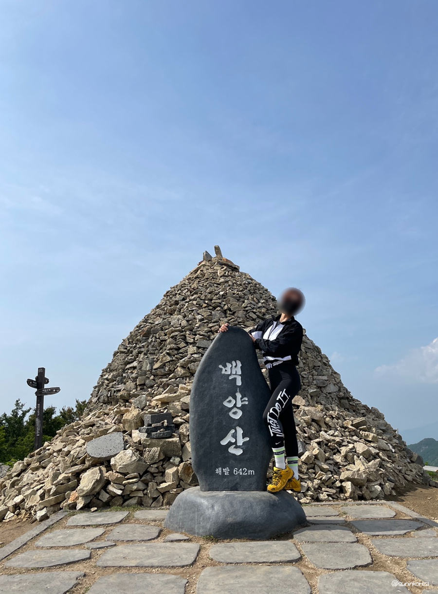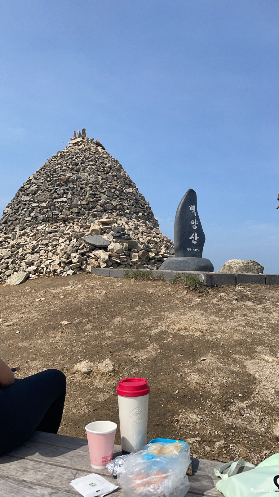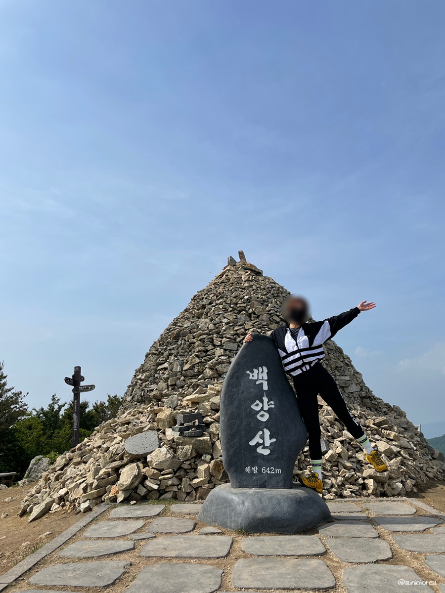 드디어 백양산 정상이다. 정상 부근에 가면 까마귀가 을씨년스럽게 운다. 소리와는 다르게 정상 비석 부근에는 인증샷을 찍는 사람들과 동영상을 찍는 사람들로 북적거린다. 챙겨온 과일과 차가운 아메리카노를 한잔하면 피로가 싹 풀린다. 다시 힘내서 하산해보자... 여엉차...!!