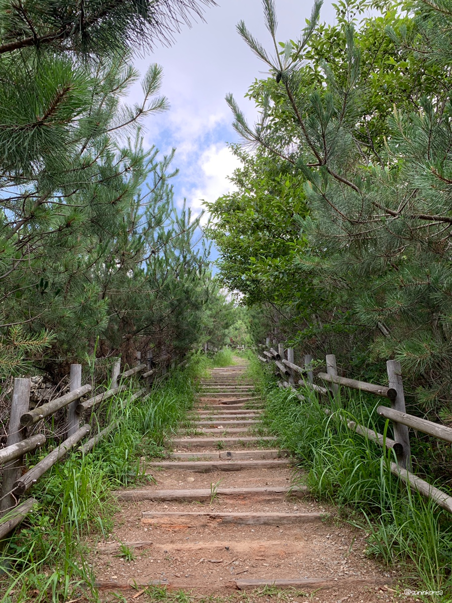 데크길을 따라 올라가면 중간에 쉴 곳이 있다. 호흡을 한번 가다듬고 다시 힘내서 올라가는 길.