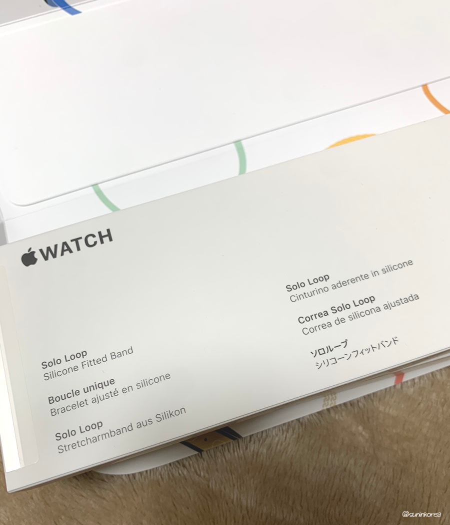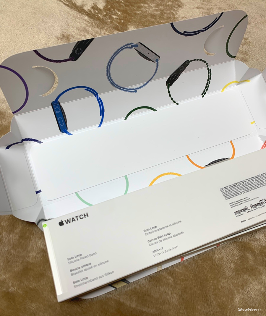 요렇게 박스가 두개다. 하나는 애플워치 본품, 하나는 구성품인 솔로 루프.