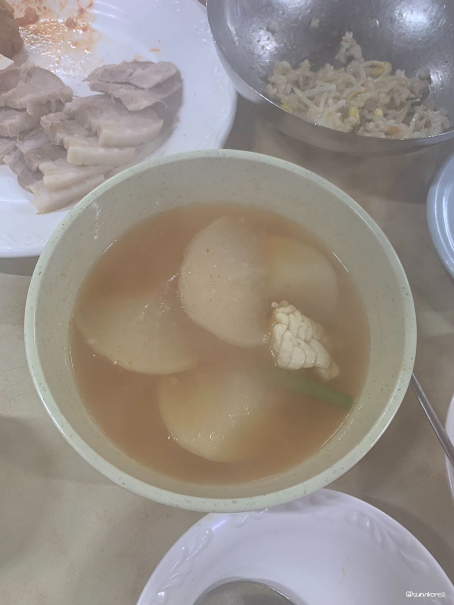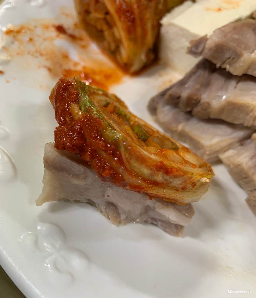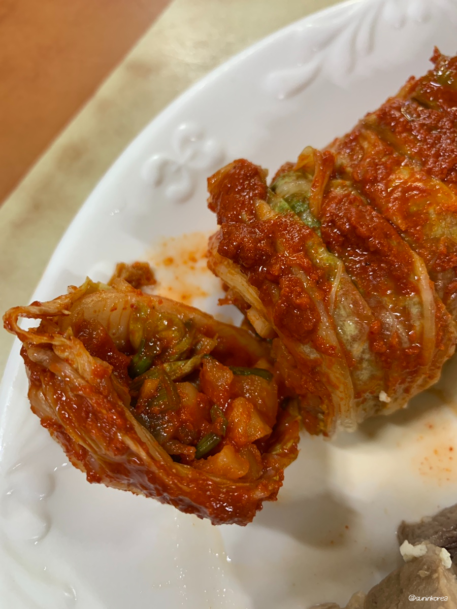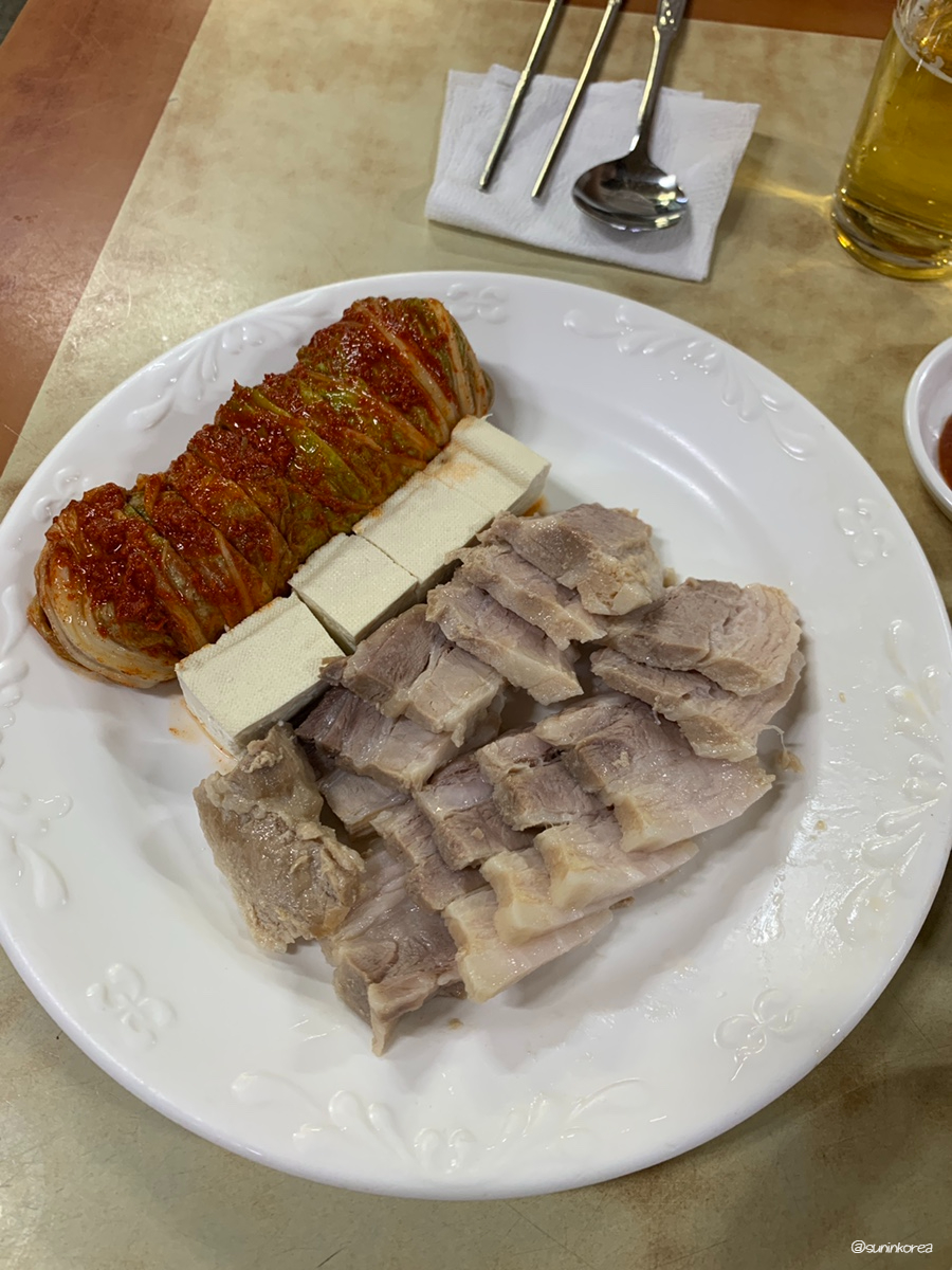 역시 수육 고기는 삼겹살로 해야 부드럽다 ㅠㅠ 내가 좋아하는 수육 맛!!! 김치도 그냥 김치가 아니라 안에 야채무침(?) 야채김치(?) 같은걸 넣어서 돌돌 말아 썰어주시는 거라 너무 크다고 생각 되어도 한입에 와앙~~~ 먹어야 그 맛을 오롯이 느낄 수 있다. 마시썽!!! 한점에 소주한잔...♥ #좋은데이요정 #남포동굴렁쇠