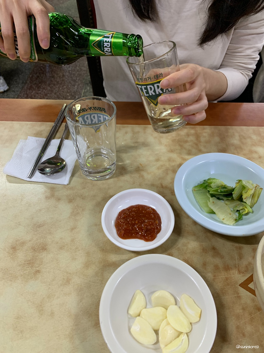 거의 다 마무리 되어 갈 때 쯤에 주셨다. 갑자기 해장각이네. 각일병씩 때리고 이제 2차하러 가본다.... 아니 근데 여기 웨이팅 쩔어연... 4시 반부터 시작해서 6시 쫌 넘어서 나갔는데 음... 5시 반 ~ 6시 사이에 테이블이 다 차고 6시 안되서부터 웨이팅이.....!(토요일 기준) 일찍가세여 일찍!!! 대낮부터 가시는 걸 추천!!! 낮술 조지쟝~~~~ >.<