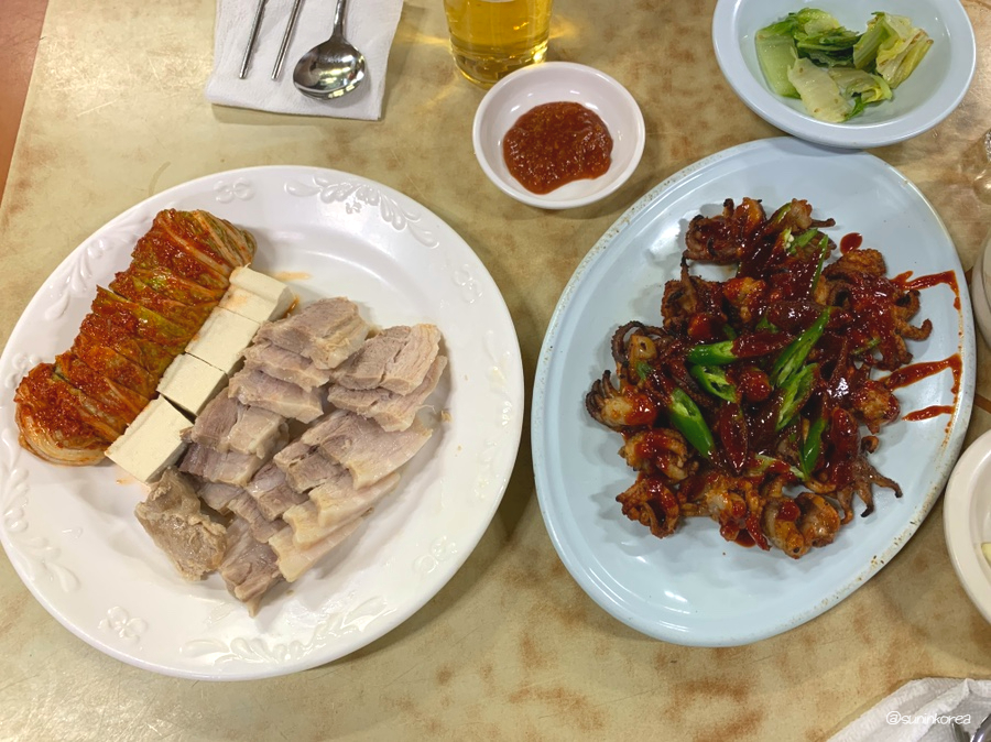 우리는 일단 땡초쭈꾸미랑 보쌈 소자를 주문했다. 낄... 달린다...ㅠㅠㅠ 록빈 먹으러 다시 와야지... 또다시 굴러야하는 합당한 이유가 생겼넴 ㅋ.ㅋ
