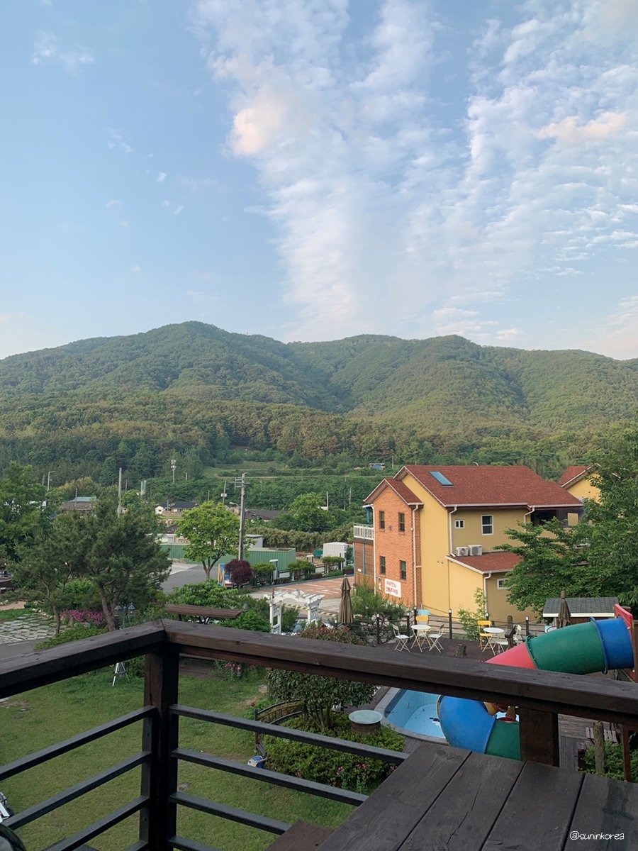 뷰가... 진짜 최고다... 초록초록한 뷰!! 최고!!! 눈이 편안해진다. 사장님께서 바베큐 준비를 해주셔서 진짜 신나게 먹었다.