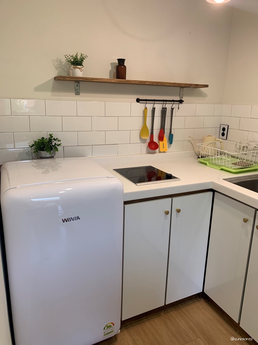 TV도 있어서 소파에서 편안히 TV 시청 가능. 예쁜 조명과 깔끔한 주방이 마음에 든다.