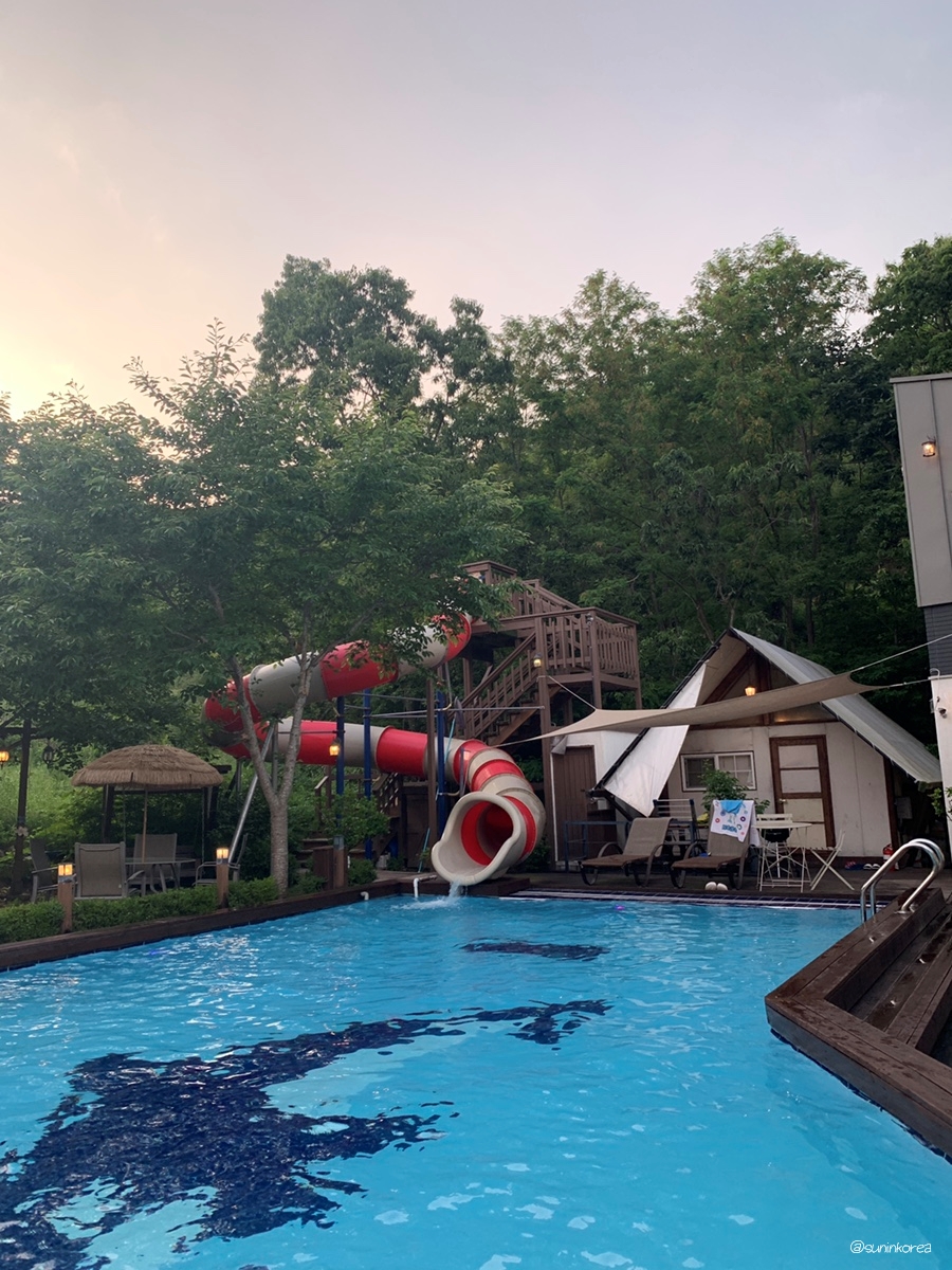 크고 깊진 않지만 다른 펜션의 전용 수영장보단 확실히 큰 편. 이용하고 싶었지만 오후 7시 쯤에 도착했고, 다음날 아침은 좀 추웠던지라 이용하진 못했다 ㅠ.ㅠ...